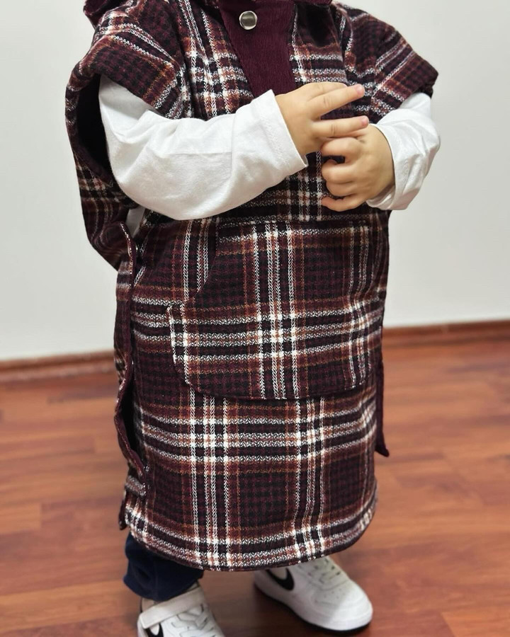 2-6 yaş çocuğunuz için özel tasarlanmış bu panço, dışı dayanıklı oduncu kumaşıyla soğuk havalara karşı mükemmel bir koruma sağlarken, içi fitilli kadife kumaşıyla da yumuşaklık ve konfor sunar. 🧸